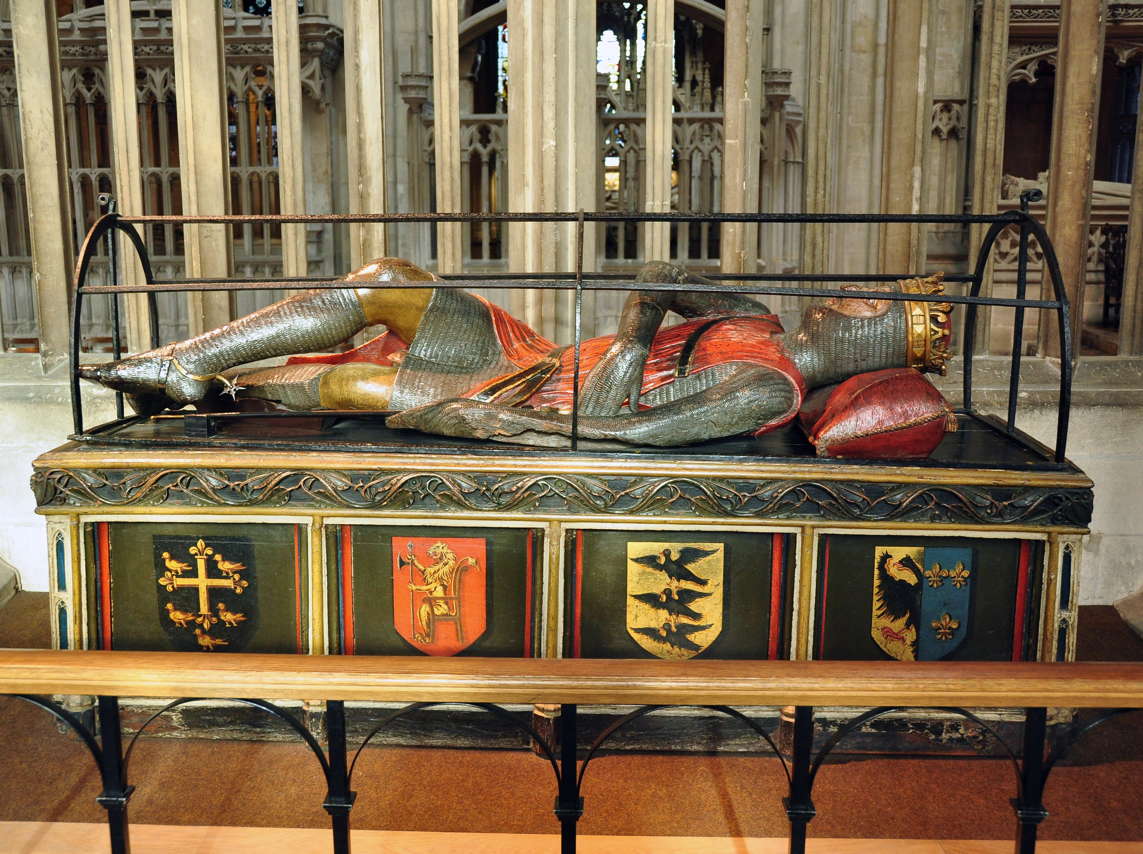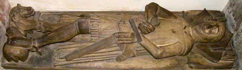 Le meilleur exemple que l'on puisse citer est celui de Robert Courtheuse (1051/1052-1134), fils aîné de Guillaume le Conquérant, enterré dans la Cathédrale de Gloucester. L'effigie en chêne date du XIVe siècle.
