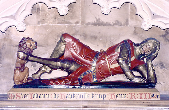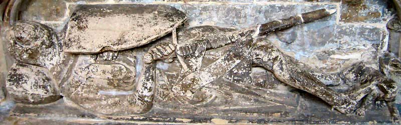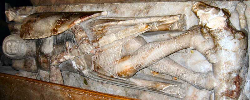 Les effigies tombales en armure sont apparues en Europe vers 1240 et ont pris un essor formidable en Angleterre. Facilement identifiables par l'apparition de la cotte de mailles et des emblèmes spécifiques de la chevalerie que sont les boucliers et épées, on en recense en Grande-Bretagne plus de 150 datant du XIIIe siècle et près de 200 datant du XIVe siècle. C'est dire si les illustrations ne manquent pas.